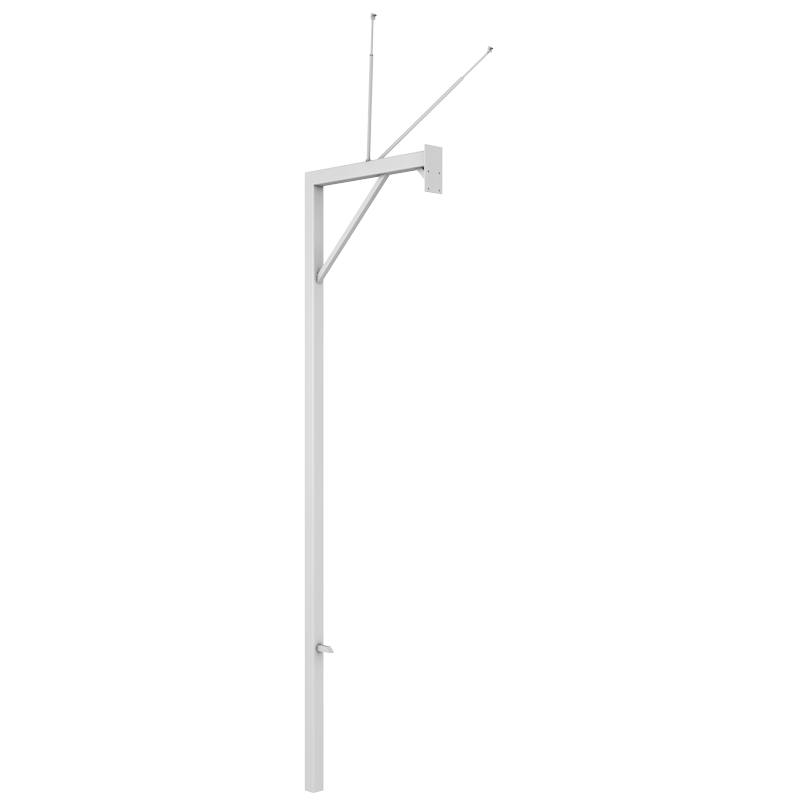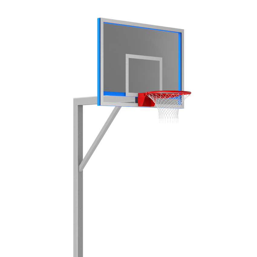 Позволяет закрепить баскетбольные щиты из оргстекла или ламинированной влагостойкой фанеры размером 1200х900 мм. Стойка закапывается в землю на 600 мм и заливается бетоном, что позволяет ей выдерживать все игровые удары. При этом высота до кольца составляет 3050 мм. Стойка покрыта полимерно-порошковым покрытием.