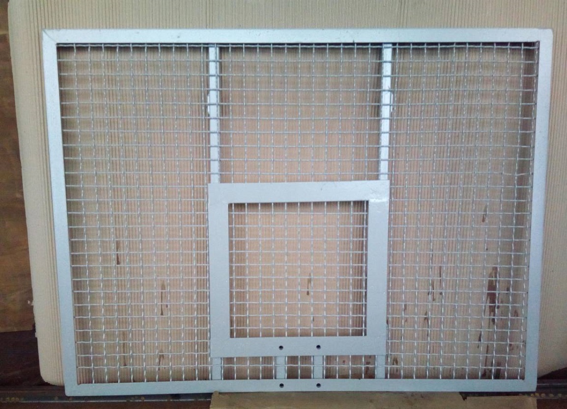 Щит представляет собой панель металла, закрепленный на металлической раме по периметру, с помощью винтов. Между рамой и панелью находится резиновая прокладка, которая смягчает вибрации панели при ударе мячом и защищает ее от повреждений.