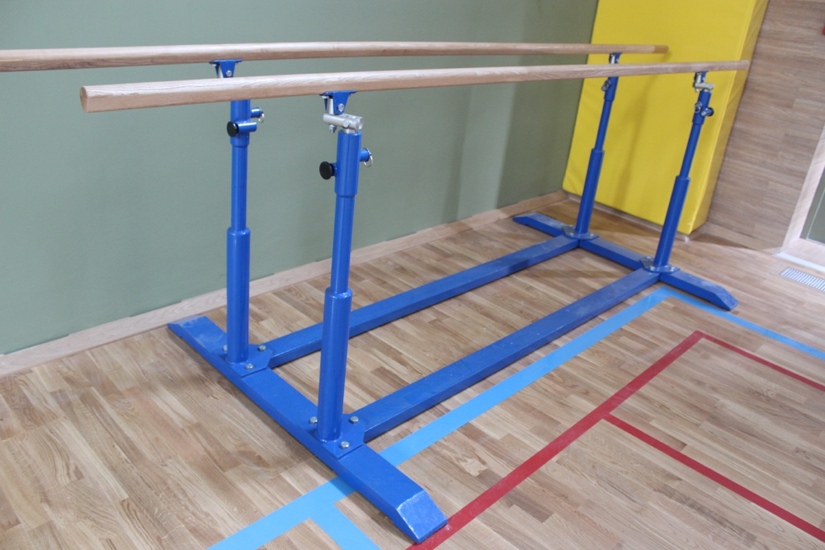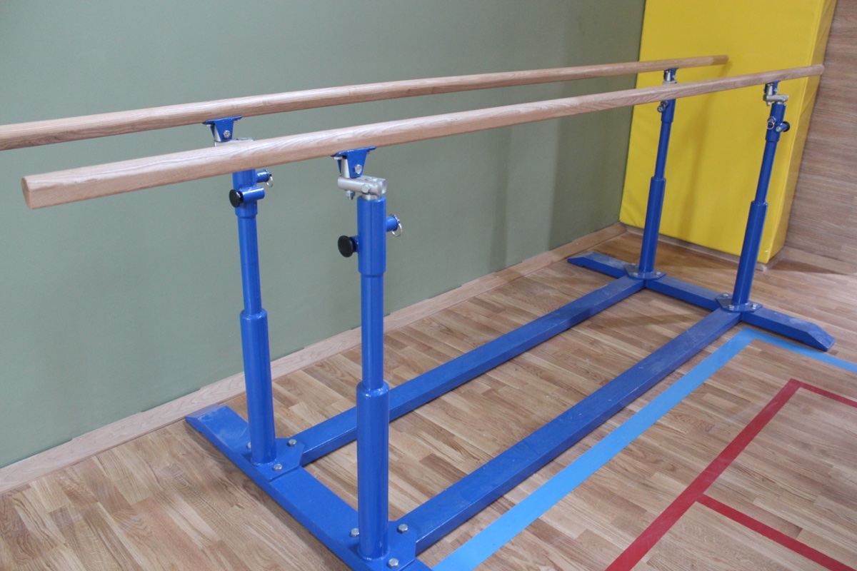Брусья гимнастические мужские параллельные предназначенные для занятий спортом в спортивном зале. Внутри бруса находится металлический прут, который способствует прочности. Центр тяжести внизу, лапы 1,4 м – большие и устойчивые.