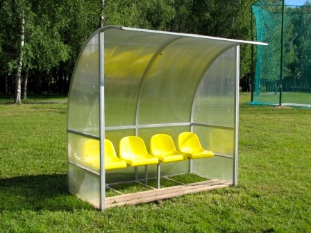 Кабинка для запасных игроков на 4 места. С козырьком, который закрывает отдыхающих от солнца и дождя. Боковые стенки защищают от ветра.