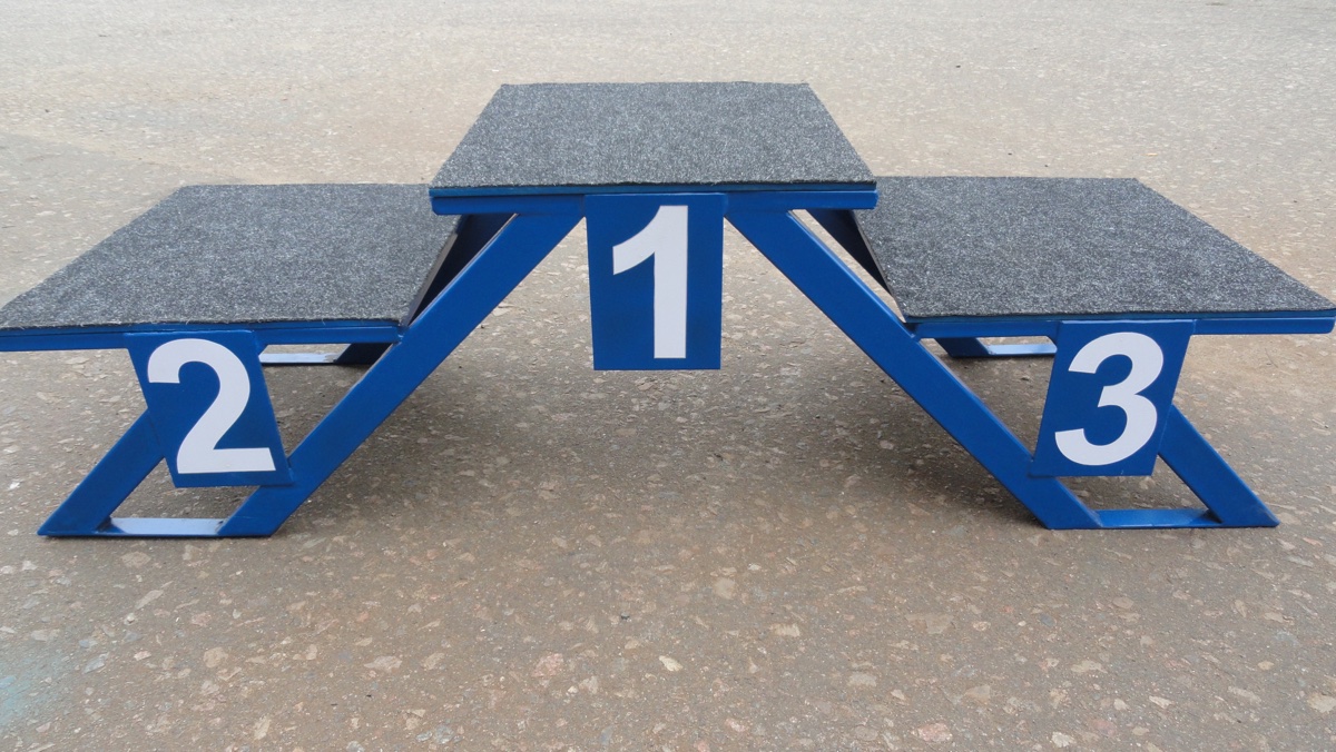 Пьедестал победителей - трёхступенчатая возвышенность, для награждения тройки лучших, с самой высшей точкой - первое место, средней - второе место, и низшей - третье место. А так же с нумерацией победных мест.