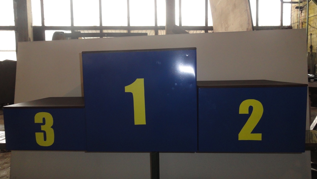 Пьедестал победителей - трёхступенчатая возвышенность, для награждения тройки лучших, с самой высшей точкой - первое место, средней - второе место, и низшей - третье место. А так же с нумерацией победных мест.
