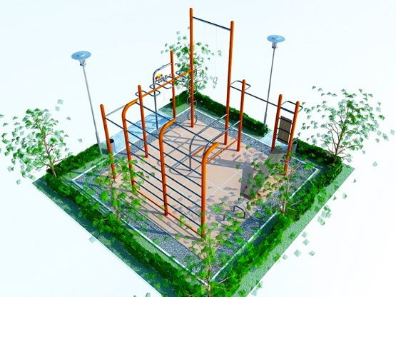Площадка для воркаута "Двор" для тренировок, как для профессиональных спортсменов, так и для любителей занятий спортом. Предназначен для лазания, растяжек, тренировок мышц пресса, выполнения гимнастических упражнений.