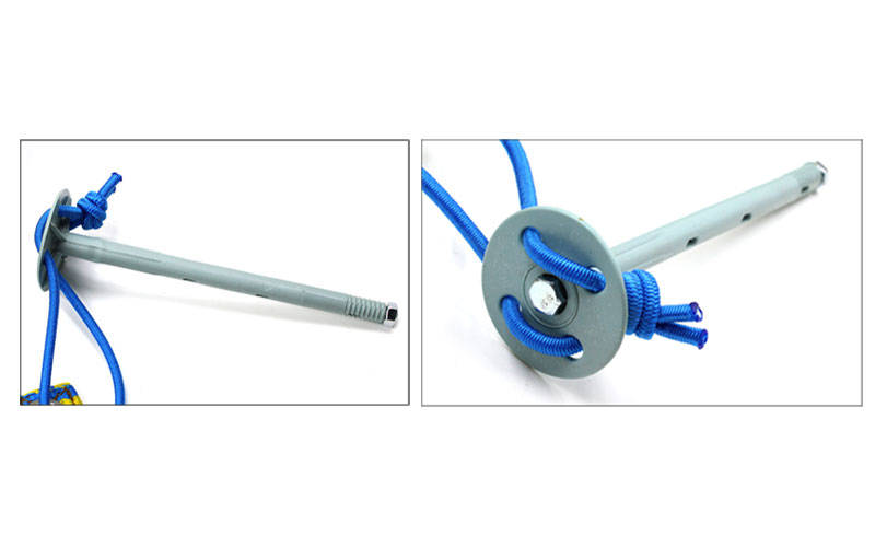 Комплекте 4шт. металлических креплений в пластиковой защите, резиновые шнуры d-4мм. соединяют нерж.кольца на ленте с креплениями (колышками)