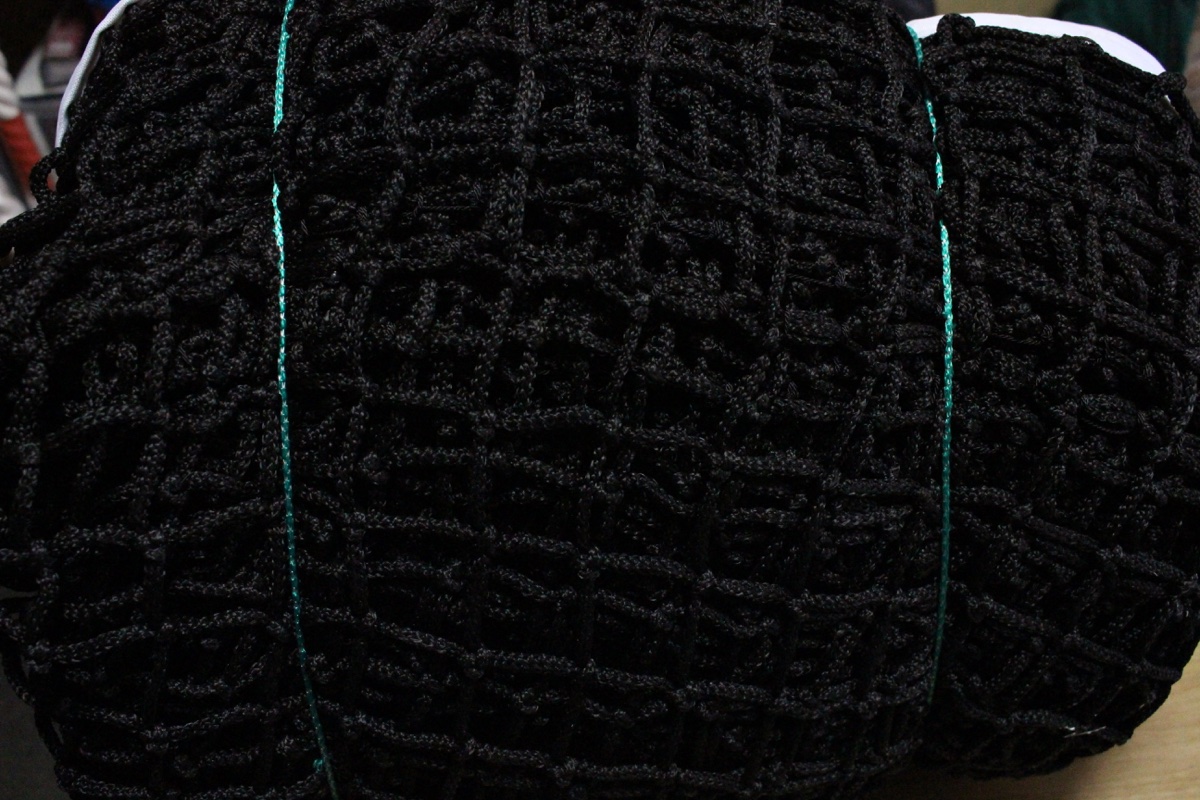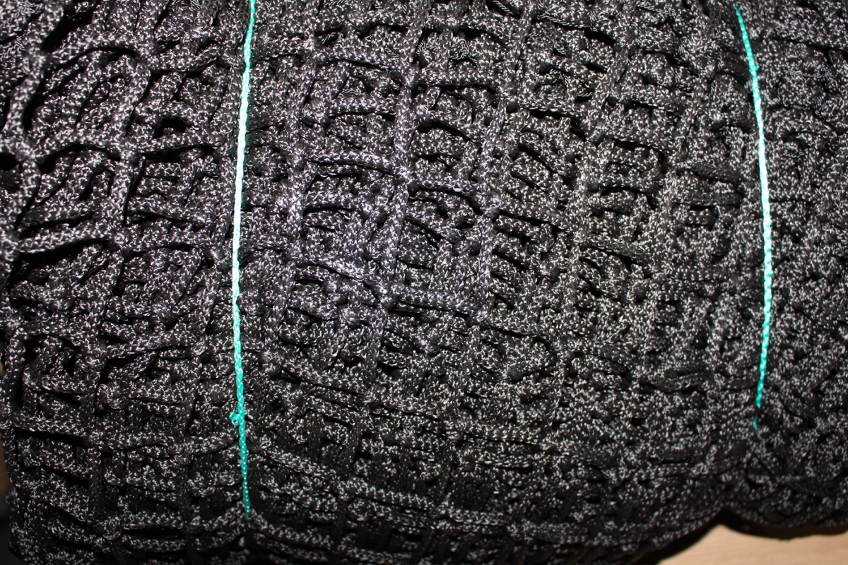 Верх и бока сетки обшит прочной синтетической лентой. Крепится с помощью троса и люверсов.