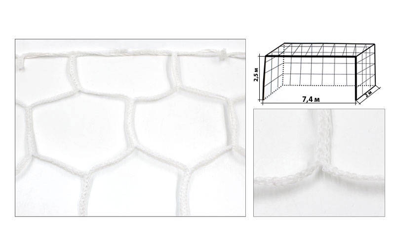Сетка для футбольных ворот размером 7320x2440 мм на розтяжки (глубина ворот-2000мм) предназначена для тренировок в спортивном зале и на стадионе.