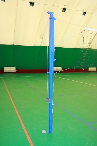 Стойки волейбольные вставляются в закладную, которая бетонируется в землю. Для крепления сетки предусмотрены специальные крючки. Сетка крепится с помощью крючков к траверсам стоек и держится за трос, протянутый между стойками.