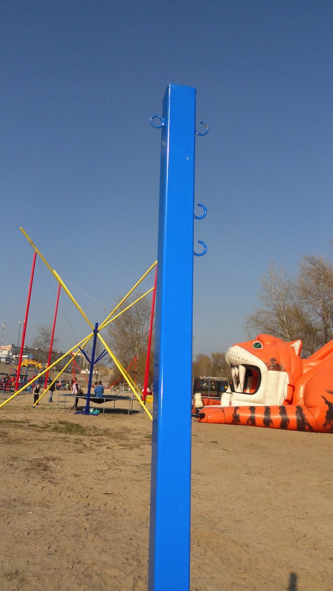 Комплект из 2-х стоек. Стойки бетонируются в землю. Для крепления бадминтонной и волейбольной сеток предусмотрены специальные крючки. Сетка в комплект не входит.