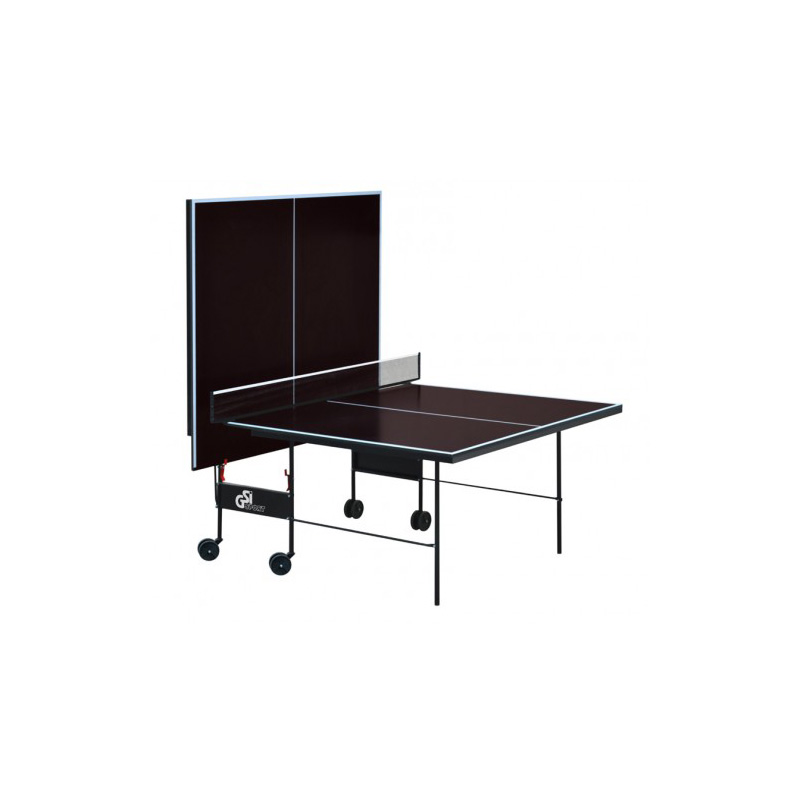 Уличный теннисный стол Gt-2 для занятий на открытых спортивных площадок. В качестве материала стола используется влагостойкая фанера (ФСФ – фанера, склеенная формальдегидными клеями) темно-коричневого цвета толщиной 15 мм. Этот материал устойчив к воздействию жары и холода, а также влаги.