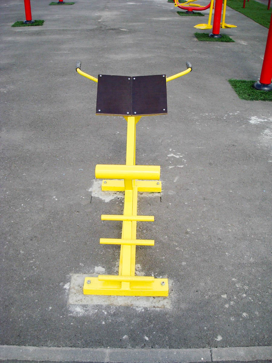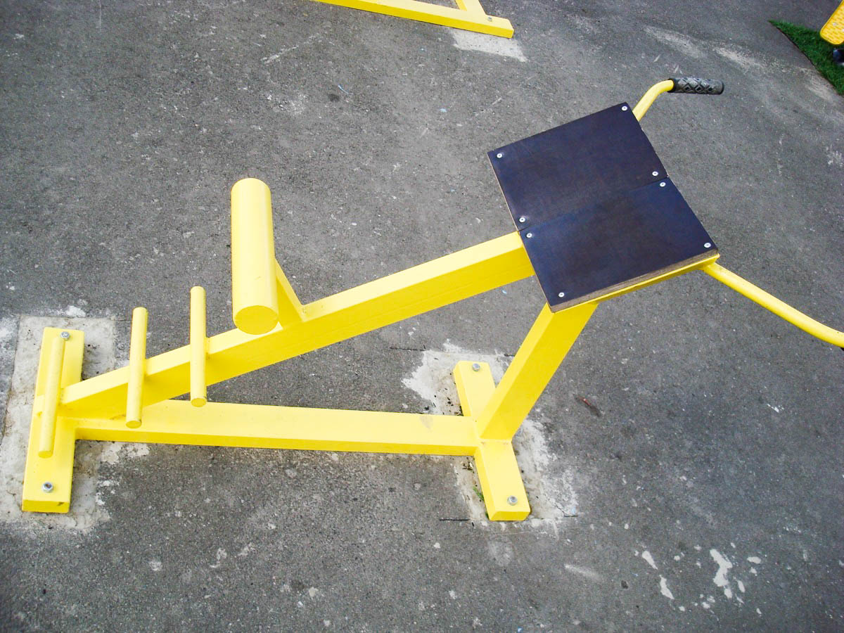 Ноги фиксируются с помощью трех специальных перекладин, что позволит тренироваться людям с разным ростом. Для удобства, на тренажере есть поручни с резиновыми накладками, с помощью которых можно легко и просто занять правильную позиции и подняться после выполнения упражнения.