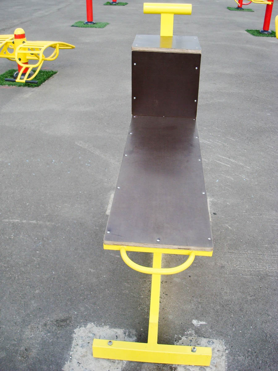 На тренажере есть поручни с резиновыми накладками, с помощью которых можно легко и просто занять правильную позицию и подняться после выполнения упражнения.