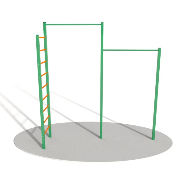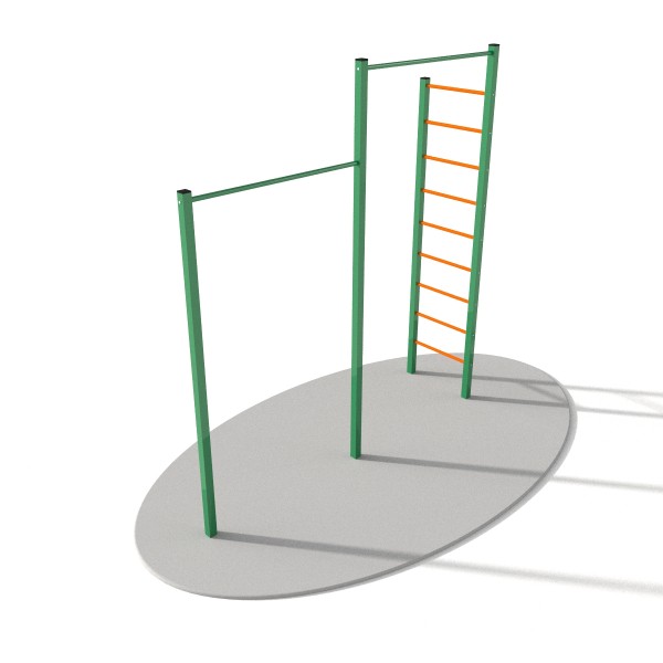 Спортивный комплекс состоящий из двухуровневого турника и шведской стенки.